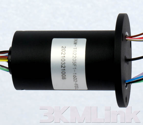 3KM T-series slip ring is designed with a through hole for shaft mounting, the through hole sizes are from 12.7mm to 124.6mm. it could be applied to transmit power, signals, RF, gas and fluid when the devices require 360° rotating.